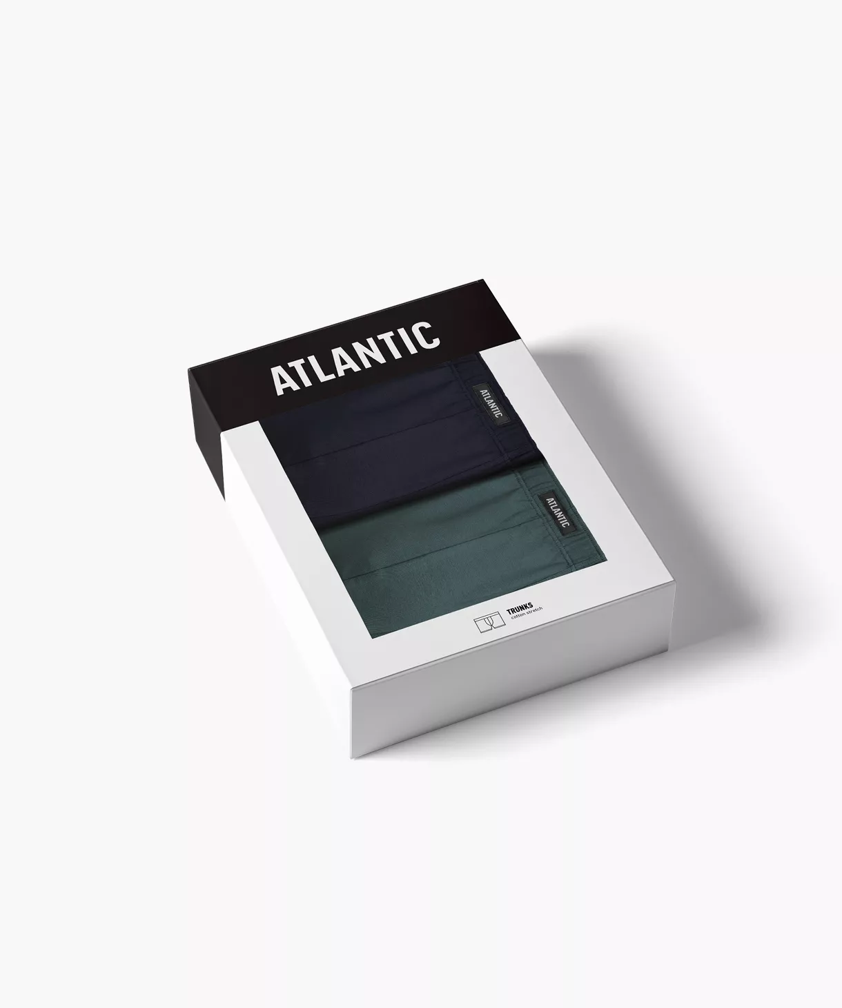 W talii bokserki wykończone są elastyczną, nieuciskającą gumą z subtelnym logo Atlantic, która stabilnie trzyma bieliznę na miejscu. Zestaw w dwóch uniwersalnych kolorach – ciemno-zielonym i granatowym – to idealny wybór na każdy dzień.
