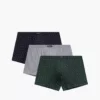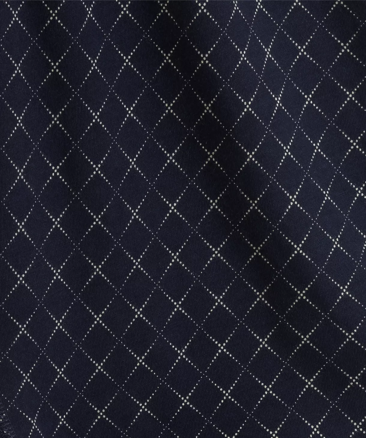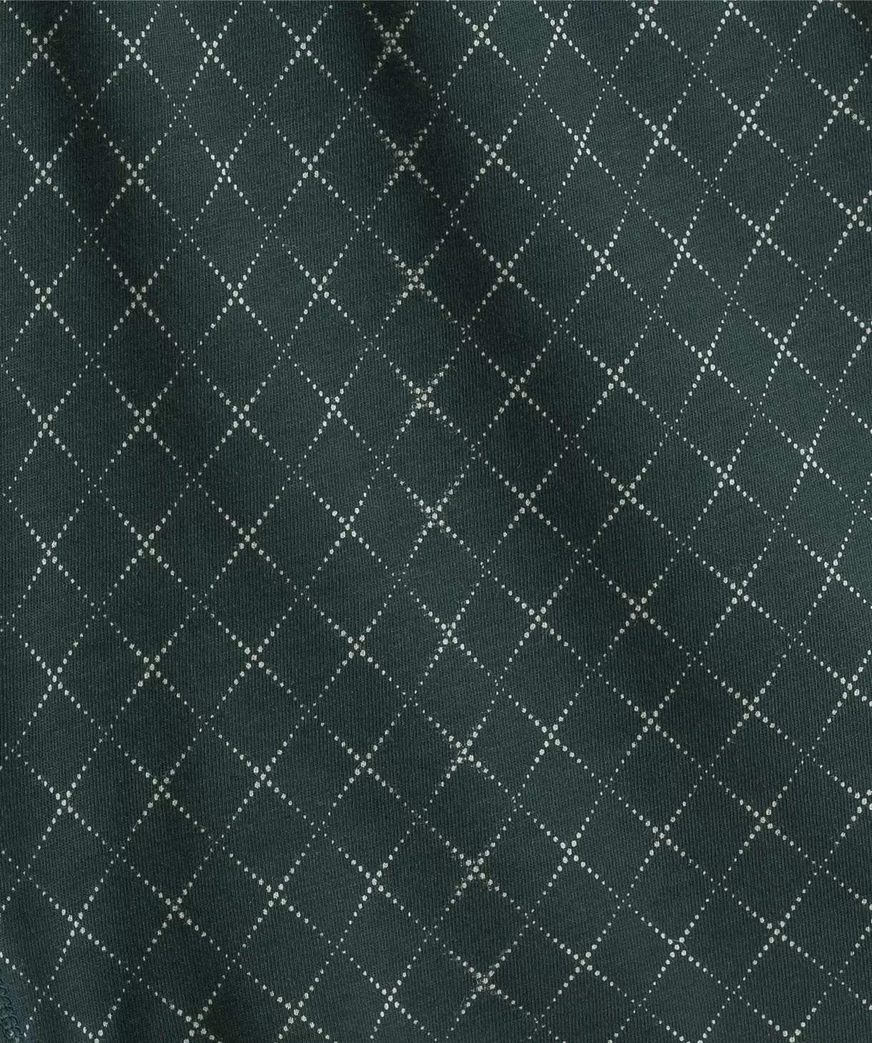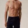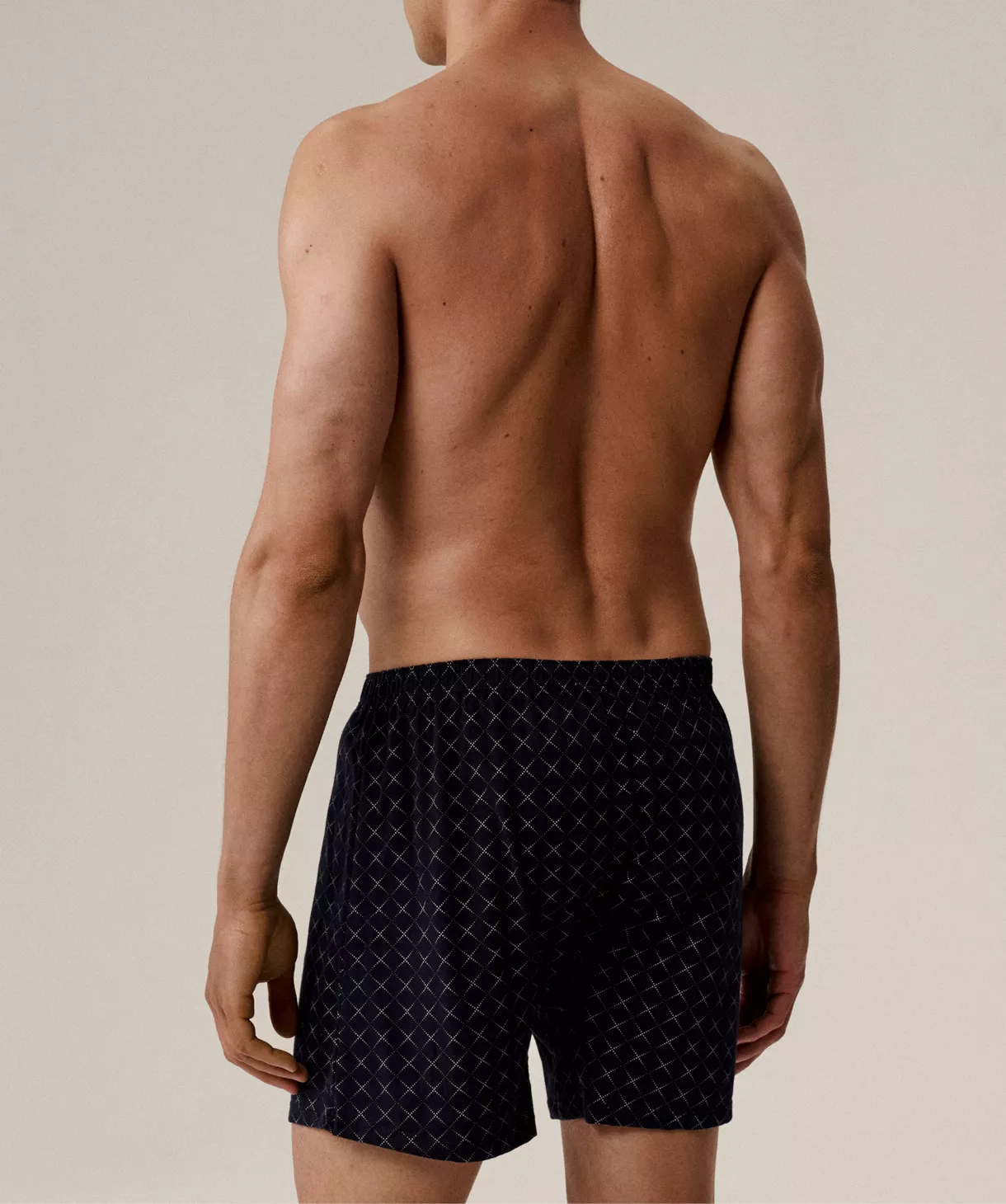 W 2-packu znajdują się luźne bokserki męskie w dwóch kolorach: granatowym i ciemnozielonym, ozdobione geometrycznym wzorem w kratkę. Bokserki ze średniej wysokości stanem i standardowej długości nogawkami, wykończone są w pasie miękką i nieuciskającą gumą wewnętrzną.