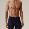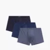 W 2-packu znajdują się luźne bokserki męskie w dwóch kolorach: kobaltowym i ciemno-niebieskim, ozdobione małymi, geometrycznymi wzorkami. Bokserki ze średniej wysokości stanem i standardowej długości nogawkami, wykończone są w pasie miękką i nieuciskającą gumą wewnętrzną.