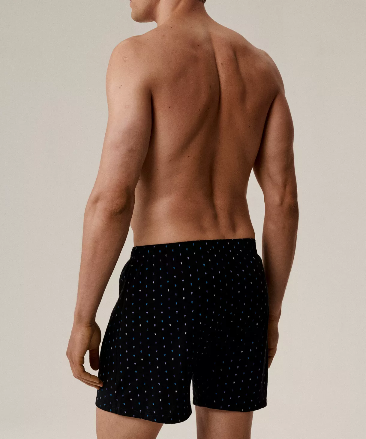 W 2-packu znajdują się luźne bokserki męskie w kolorze czarnym, ozdobione wzorem w kolorowe pinezki lokalizacyjne. Bokserki ze średniej wysokości stanem i standardowej długości nogawkami, wykończone są w pasie miękką i nieuciskającą gumą wewnętrzną. Bielizna wykonana jest z miękkiej w dotyku, przewiewnej i przyjaznej dla skóry bawełny, która dodatkowo skutecznie zapobiega poceniu się ciała, jest trwała w użytkowaniu i zapewnia uczucie świeżości przez cały dzień.