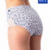 Figi damskie z wysokim stanem łączą wygodę i elegancję. Wykonane z miękkiej, wysokiej jakości bawełny z dodatkiem elastanu, dopasowują się do sylwetki, a koronkowe zdobienia dodają subtelnego uroku. Wysoki krój zapewnia pełne zakrycie brzucha i pośladków, gwarantując komfort przez cały dzień. Zestaw zawiera dwie pary, starannie zapakowane w eleganckie kartonowe pudełko – idealne na prezent.