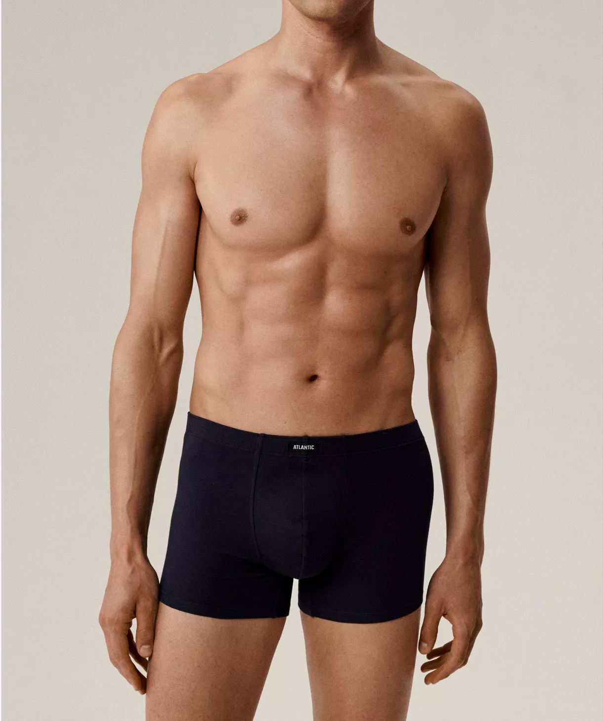 Bokserki o uniwersalnym kroju odznaczają się dość wysoko zaznaczoną talią, w której wykończone są nieuciskającą gumą wewnętrzną z logo Atlantic oraz standardowej długości nogawkami.