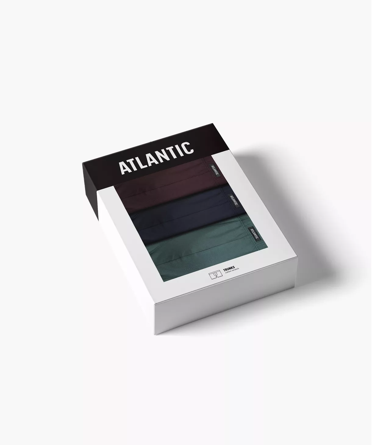 Ten trzypak to przylegające do ciała bokserki męskie w kolorach: winnym, ciemno-zielonym oraz granatowym.