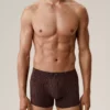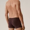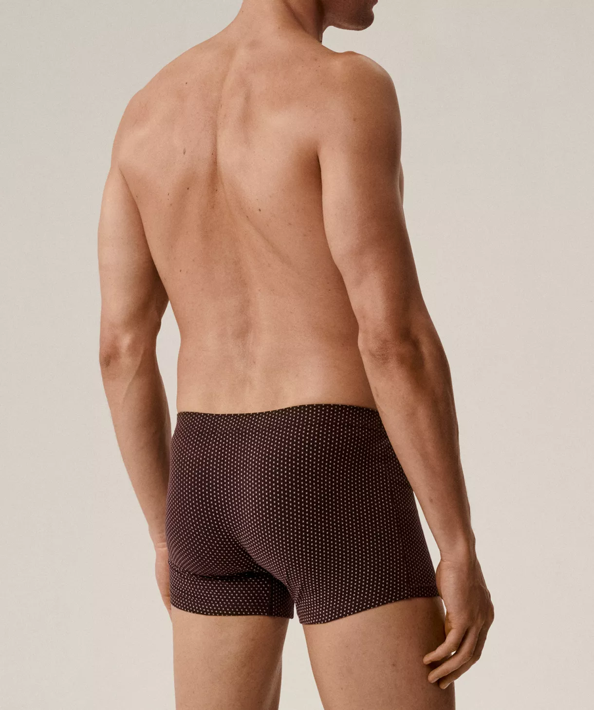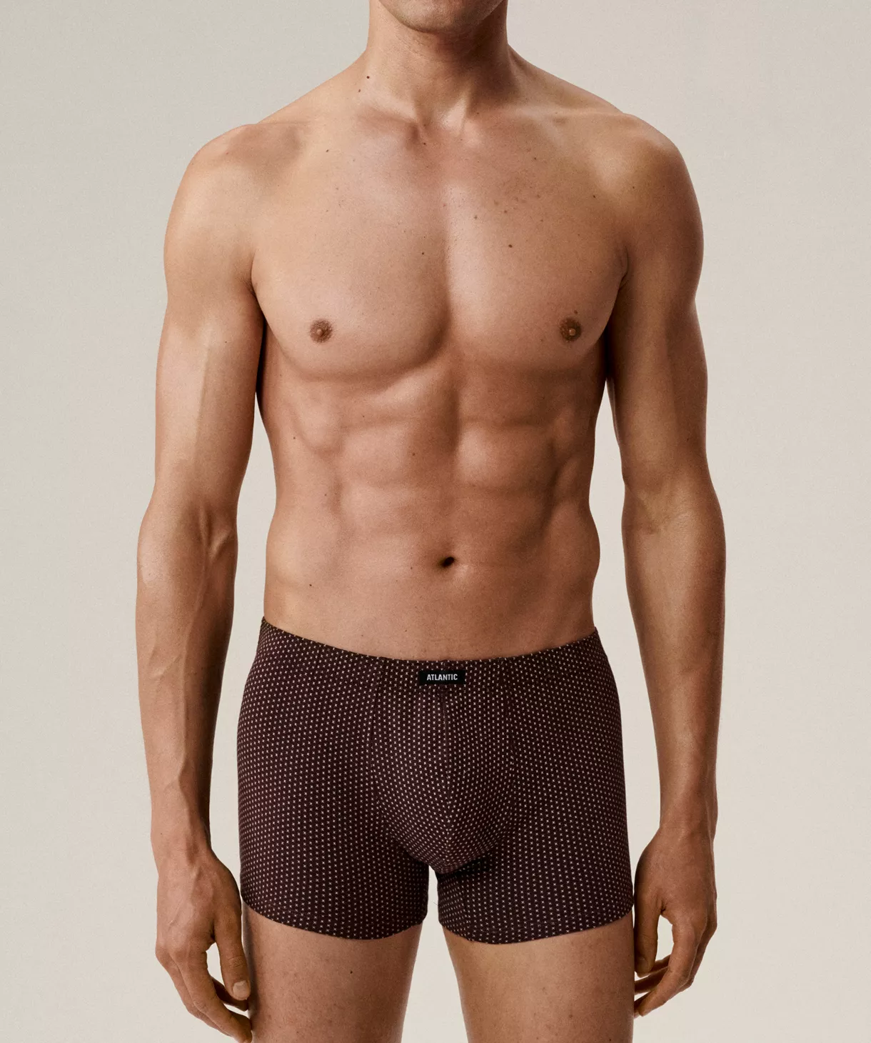 W zestawie znajdują się trzy pary obcisłych bokserek męskich: szmaragdowe i w kolorze wina – z graficznymi wzorkami oraz gładkie w odcieniu ciemny szary melanż. Majtki o klasycznym charakterze mają standardowej długości nogawki i średniej wysokości talię, wykończoną nieuciskającą gumą, którą zapewnia stabilne trzymanie bielizny na miejscu. Bokserki idealnie przylegają do ciała i gwarantują swobodę w każdej sytuacji – od codziennych aktywności po chwile relaksu.