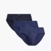 W 3-packu znajdują się slipy męskie w kolorze granatowym i ciemno-niebieskim (z małymi wzorkami w guziki) oraz jedna para gładkich, niebieskich majtek. Slipy o klasycznym kroju mają uniwersalnej wysokości talię, w której wykończone są miękką i nieuciskającą ciała gumą wewnętrzną z logo Atlantic oraz dość szerokie boki. Majtki wykonane są z przyjemnej w dotyku i przyjaznej dla skóry bawełny, która ponadto zapobiega poceniu się ciała i jest wytrzymała w użytkowaniu.