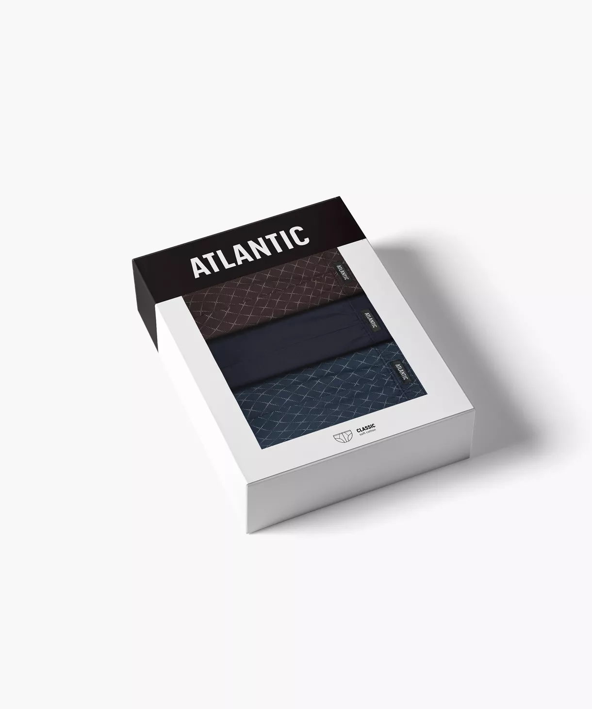 W zestawie znajdziesz trzy pary slipów męskich: jasnogranatowe i brązowe we wzór w kratkę oraz granatowe w wersji gładkiej. Bielizna o klasycznym kroju – z szerokimi bokami i średniej wysokości talią, idealnie układa się na ciele i gwarantuje swobodę w każdej sytuacji – od codziennych aktywności po chwile relaksu.