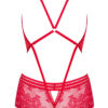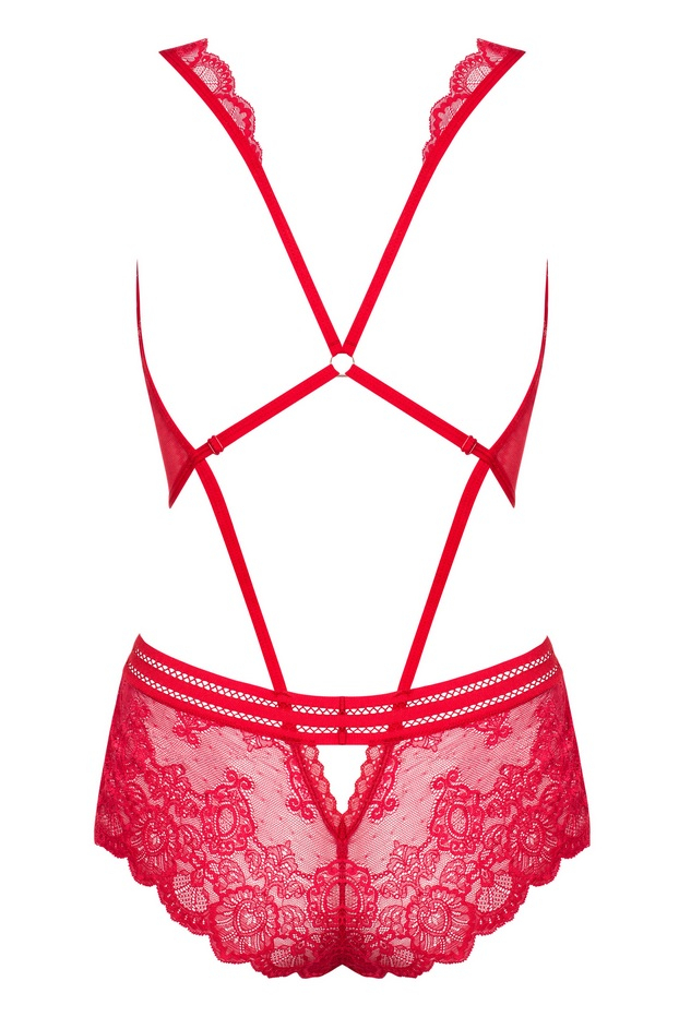 Seksowne body, które jest połączeniem topu i spodenek. Odważna koronka, prześwituje i dodaje pikanterii. Na plecach elastyczne paski i regulowane szelki. Skład: 90% poliamid, 10% elastan.