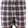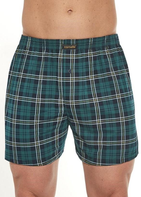 Bokserki męskie o luźnym fasonie w kratę. Wygodna guma w pasie obszyta bawełną. Rozporek zapinany na guzik. Pakowane w pudełko. Skład: 100% bawełna.