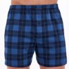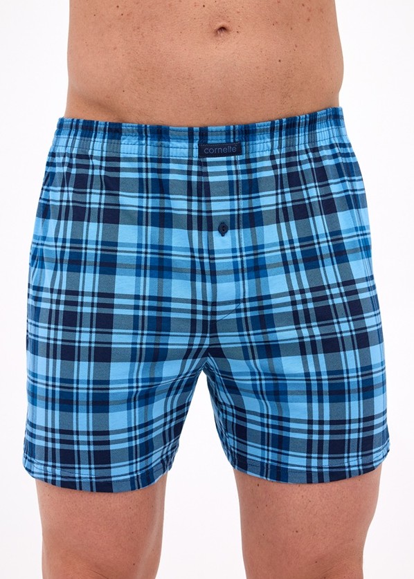 Bokserki męskie o luźnym fasonie w kratę. Wygodna guma w pasie obszyta bawełną. Rozporek zapinany na guzik. Skład: 100% bawełna.