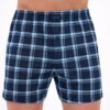 Bokserki męskie o luźnym fasonie w kratę. Wygodna guma w pasie obszyta bawełną. Rozporek zapinany na guzik. Skład: 100% bawełna.