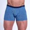 Szorty męskie z wysokiej jakości wzorzystej bawełny. Model dopasowany do ciała, w pasie szeroka, wygodna guma z logo. Płaskie łączenie szwów. Pakowane w pudełko. Skład: 95% bawełna, 5% elastan.
