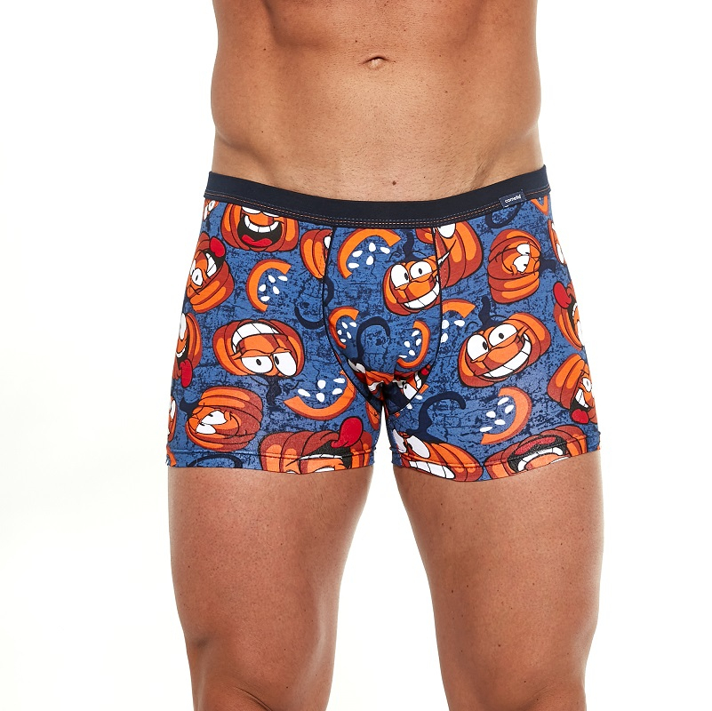 Szorty męskie wykonane z wysokiej jakości wzorzystej bawełny, ozdobione zabawnym nadrukiem. Dopasowane, płaskie szwy, wygodna guma w pasie obszyta bawełną, bezuciskowe wykończenie nogawek. Pakowane w pudełko. Skład: 95% bawełna, 5% elastan.