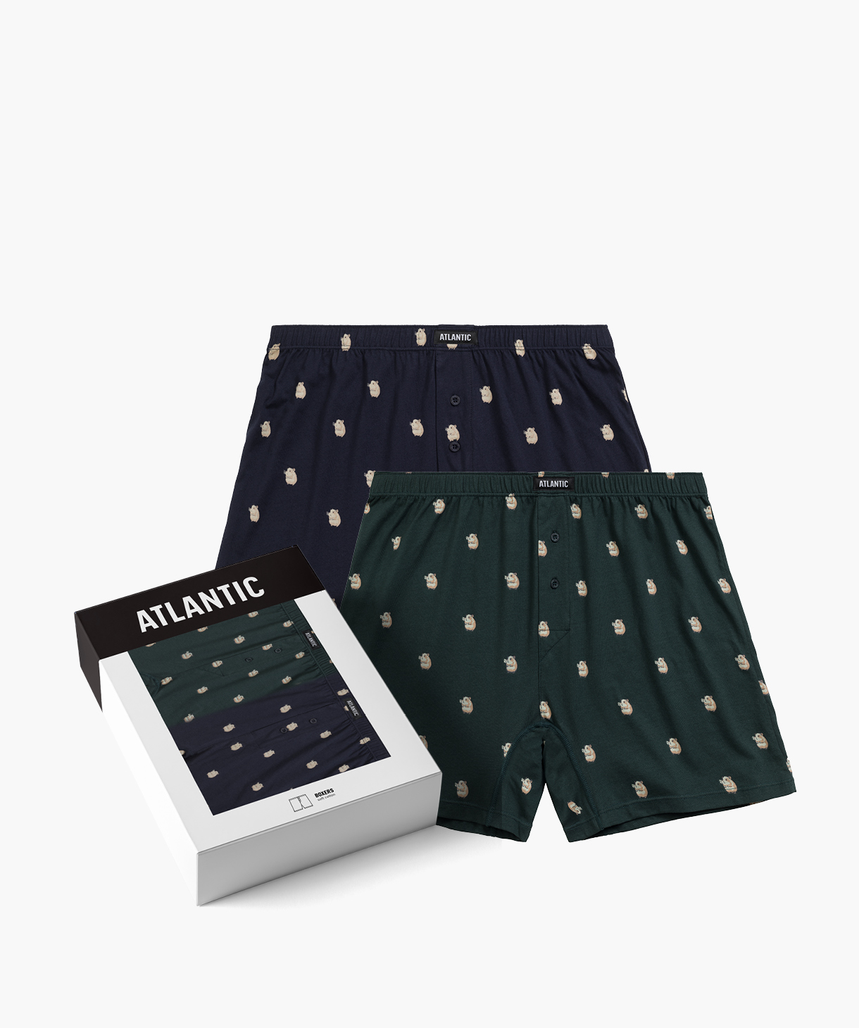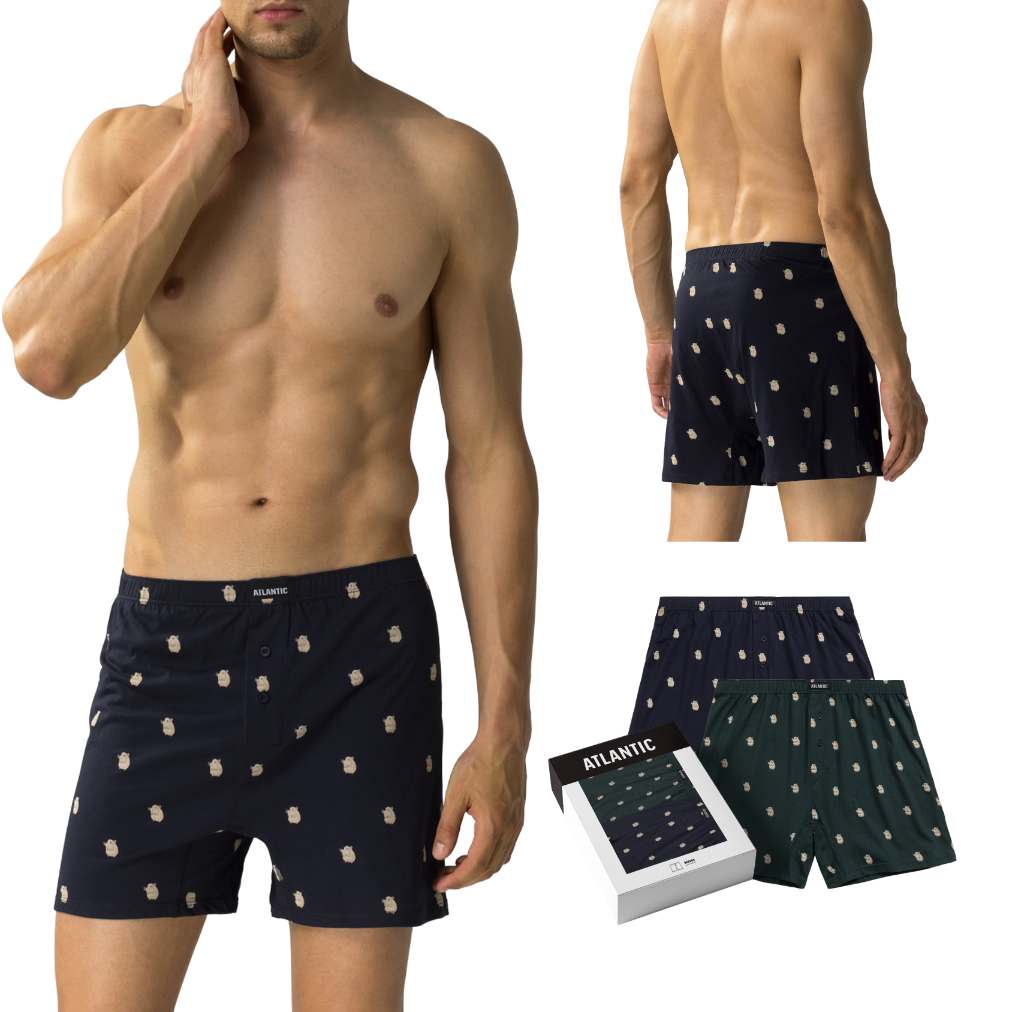 Bokserki luźne Atlantic 2MBH-003-GRA/SZG, 2-pak, granatowe/szmaragdowe WYPRZEDAŻ
