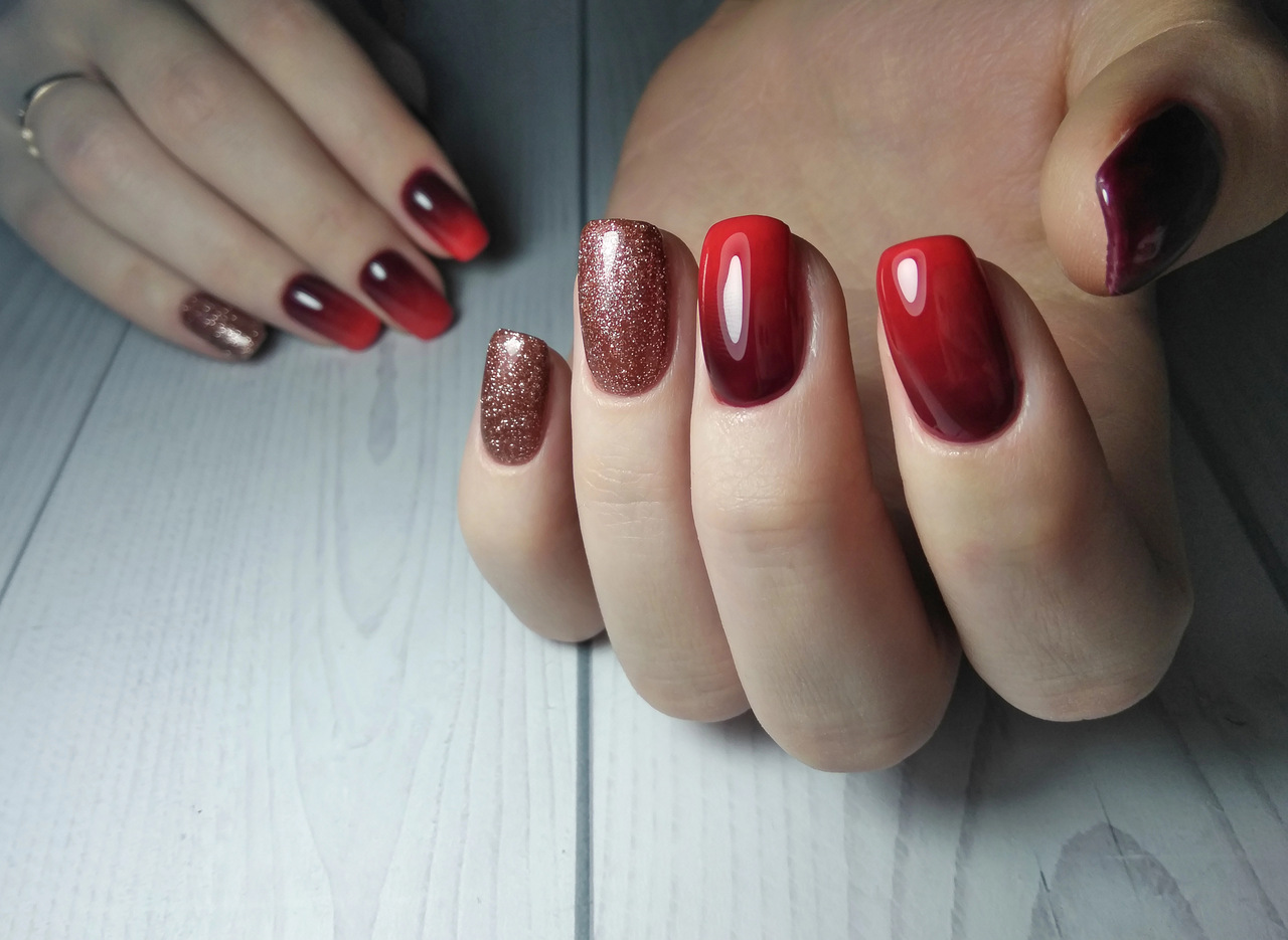 Klasyczna czerwień oraz bordowy lakier hybrydowy to kolory, które nigdy nie wychodzą z mody. Idealnie nadają się na każdą okazję i można je łączyć z różnorodnymi zdobieniami, takimi jak złote lub srebrne akcenty.