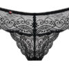 – eleganckie, koronkowe stringi- zdobienia przykuwają uwagę – rząd połyskujących kamyczków z przodu dodaje uroku- trójkątne przeszycia z tyłu podkreślają pośladki- delikatna koronka idealnie dopasowuje się do kształtów (90% poliamid, 10% elastan).