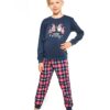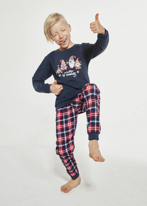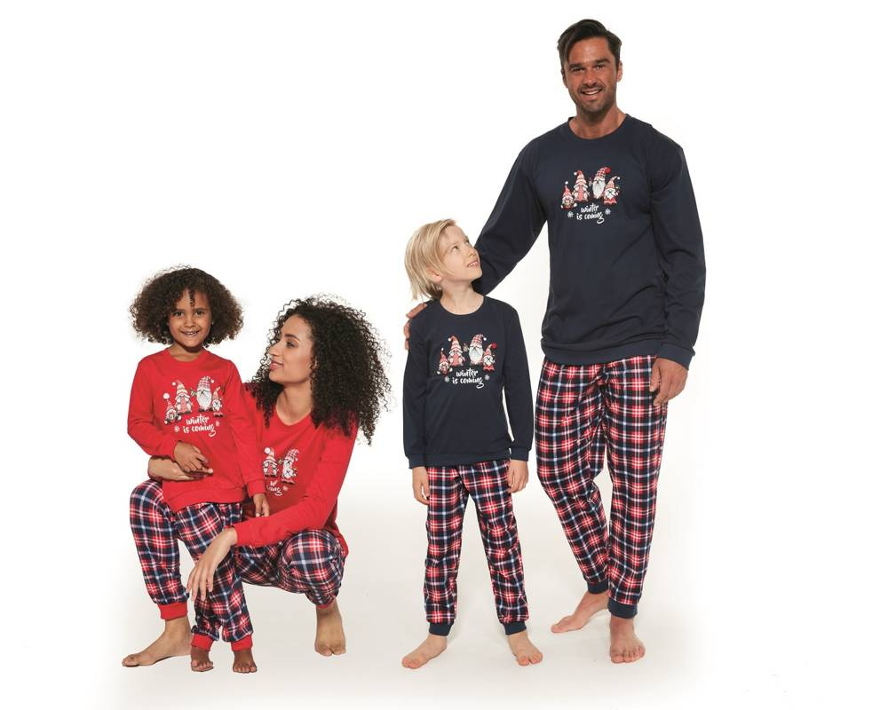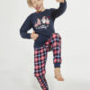 Piżama dziewczęca wykonana z wysokiej jakości bawełny to doskonały wybór na chłodniejsze dni i noce, zapewniający komfort i ciepło. Bluza z długim rękawem ozdobiona jest kolorowym, świątecznym motywem na przodzie, który wprowadza radosny, zimowy klimat i dodaje uroku. Do kompletu dołączone są długie spodnie w klasyczną kratkę, które świetnie komponują się z bluzą, tworząc stylowy zestaw. Zarówno bluza, jak i spodnie zostały wykończone ściągaczami na rękawach, dole oraz nogawkach, co zapewnia lepsze dopasowanie oraz zapobiega podwijaniu się materiału podczas snu. Piżama jest miękka, przyjazna dla skóry i idealna dla dziewczynek ceniących wygodę i świąteczny nastrój.