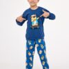 Piżama chłopięca wykonana z wysokiej jakości, miękkiej bawełny to gwarancja wygody i komfortu podczas snu. Koszulka z długim rękawem ozdobiona jest kolorowym nadrukiem z kapibarą, który nadaje piżamie wesoły, dziecięcy charakter. Do zestawu dołączone są długie, wzorzyste spodnie, które nie krępują ruchów i zapewniają pełną swobodę podczas zabawy oraz odpoczynku. Spodnie posiadają w pasie elastyczną gumkę, gwarantującą wygodne dopasowanie do sylwetki. Rękawy, nogawki oraz dół koszulki wykończono elastycznymi ściągaczami, co zapewnia komfort noszenia i dodatkową ochronę przed chłodem. Piżama jest miękka, przewiewna i trwała, idealna do codziennego użytkowania.