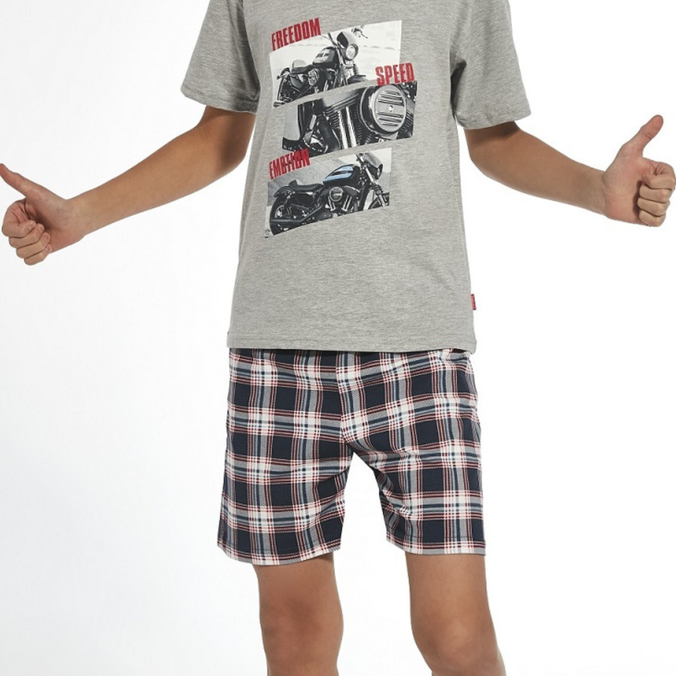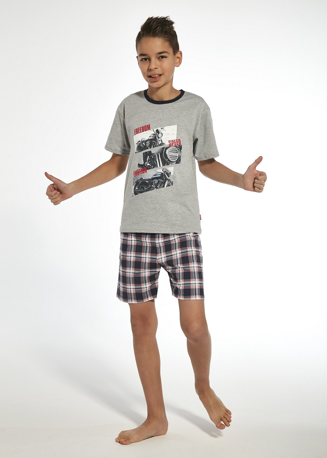 Piżama chłopięca Cornette 790/71 Freedom szara krótka bawełna