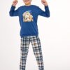 Piżama chłopięca wykonana z wysokiej jakości, miękkiej bawełny to gwarancja komfortu i wygody podczas snu. Naturalna, przewiewna tkanina jest przyjemna w dotyku i bezpieczna dla delikatnej skóry dziecka, zapewniając komfort przez całą noc. Górę kompletu stanowi koszulka z długim rękawem, ozdobiona z przodu kolorowym nadrukiem, który nadaje piżamie wesołego, dziecięcego charakteru. Do zestawu dołączone są długie spodnie w klasyczną kratkę, które nie krępują ruchów i zapewniają swobodę podczas zabawy oraz odpoczynku. Rękawy, nogawki i dół bluzy wykończono elastycznymi ściągaczami, co gwarantuje idealne dopasowanie i ochronę przed chłodem. Piżama pakowana jest w estetyczne pudełko, dzięki czemu doskonale nadaje się również jako prezent.