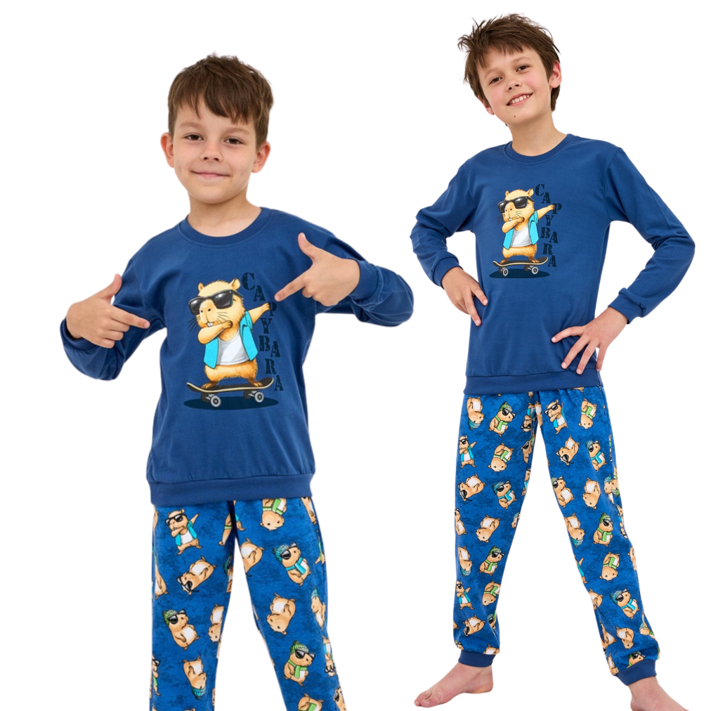Piżama chłopięca Cornette 966/177 Capybara jeans długa bawełna WYPRZEDAŻ
