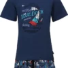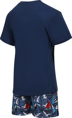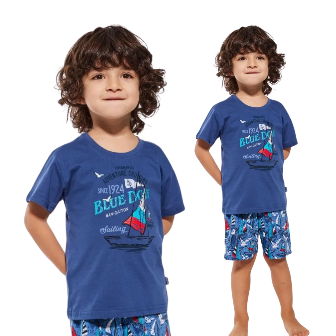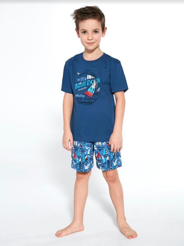 Piżama chłopięca uszyta z wysokiej jakości bawełny to świetne połączenie wygody i stylu. Koszulka z krótkim rękawem ozdobiona jest kolorowym nadrukiem, który z pewnością przypadnie do gustu najmłodszym. Do kompletu dołączone są wzorzyste spodenki, które dodają całości energicznego charakteru. Miękka i oddychająca tkanina zapewnia komfort noszenia przez całą noc, a swobodny krój nie krępuje ruchów. Idealna na ciepłe noce i domowy wypoczynek. Pakowana w pudełko.