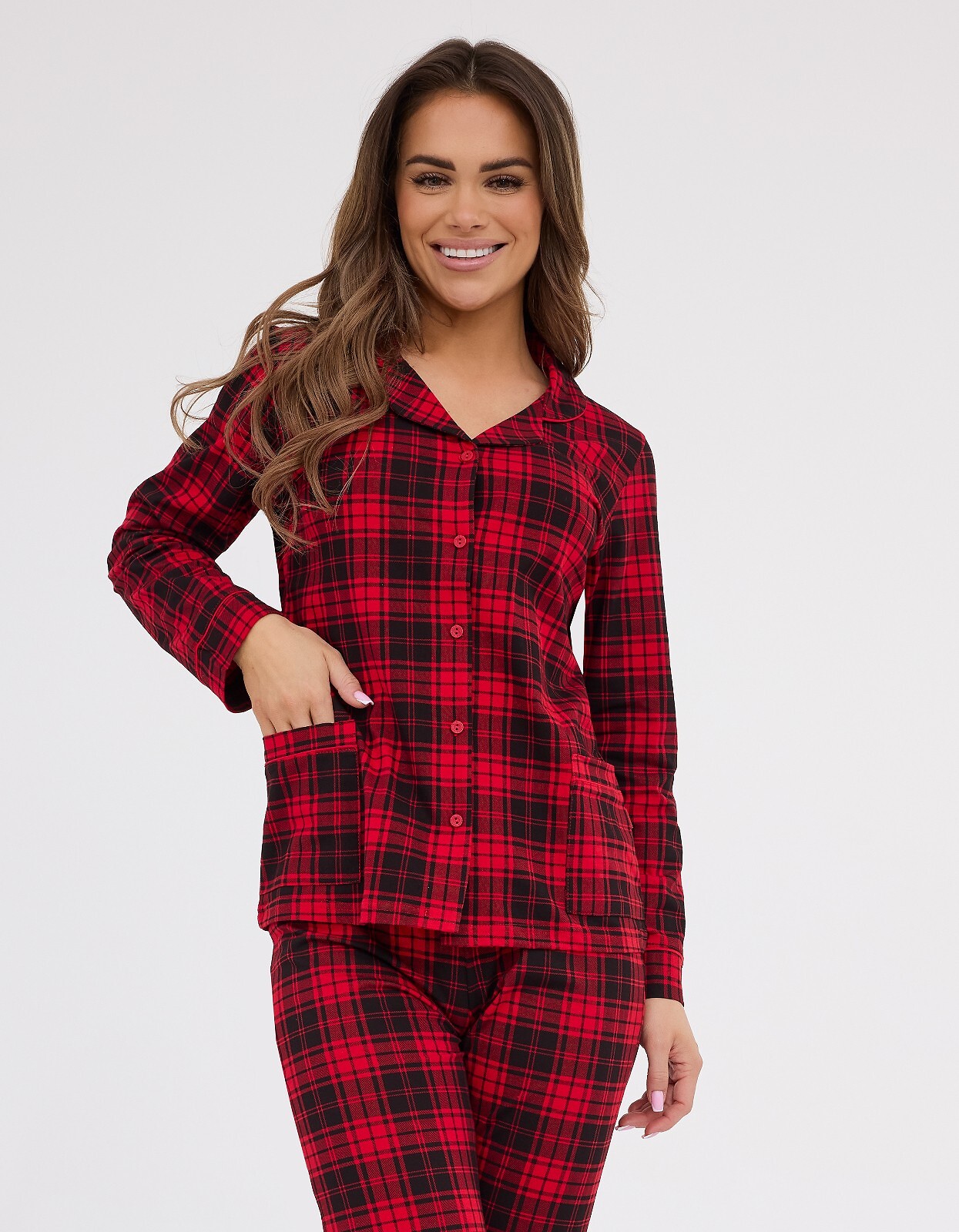 Piżama damska Cornette 482/423 Tracy Christmas długa rozpinana czerwony