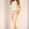Piżama damska wykonana z wysokiej jakości bawełny to połączenie komfortu, funkcjonalności i modnego wyglądu. Górę kompletu stanowi koszulka z długim rękawem w paski, która nadaje piżamie stylowego charakteru. Do zestawu dołączone są długie, jednolite spodnie, wyposażone w elastyczną gumkę w pasie oraz regulowane, wiązane troczki, pozwalające idealnie dopasować je do sylwetki. Dół koszulki, mankiety i nogawki wykończono elastycznymi ściągaczami, co zapewnia wygodę noszenia i dodatkową ochronę przed chłodem. Piżama jest miękka, przewiewna i trwała, dzięki czemu sprawdzi się podczas snu oraz relaksu w domu. Całość pakowana jest w estetyczne pudełko, co czyni ją również świetnym pomysłem na prezent.