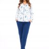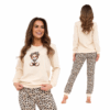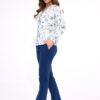 Długie spodnie w jednolitym kolorze świetnie uzupełniają zestaw. W pasie mają elastyczną gumkę obszytą miękką bawełną, która nie uciska i zapewnia wygodne dopasowanie do sylwetki. To doskonały komplet do spania i leniwego poranka z kawą w ręku. Jeśli szukasz piżamy, która łączy styl z komfortem – właśnie ją znalazłaś.