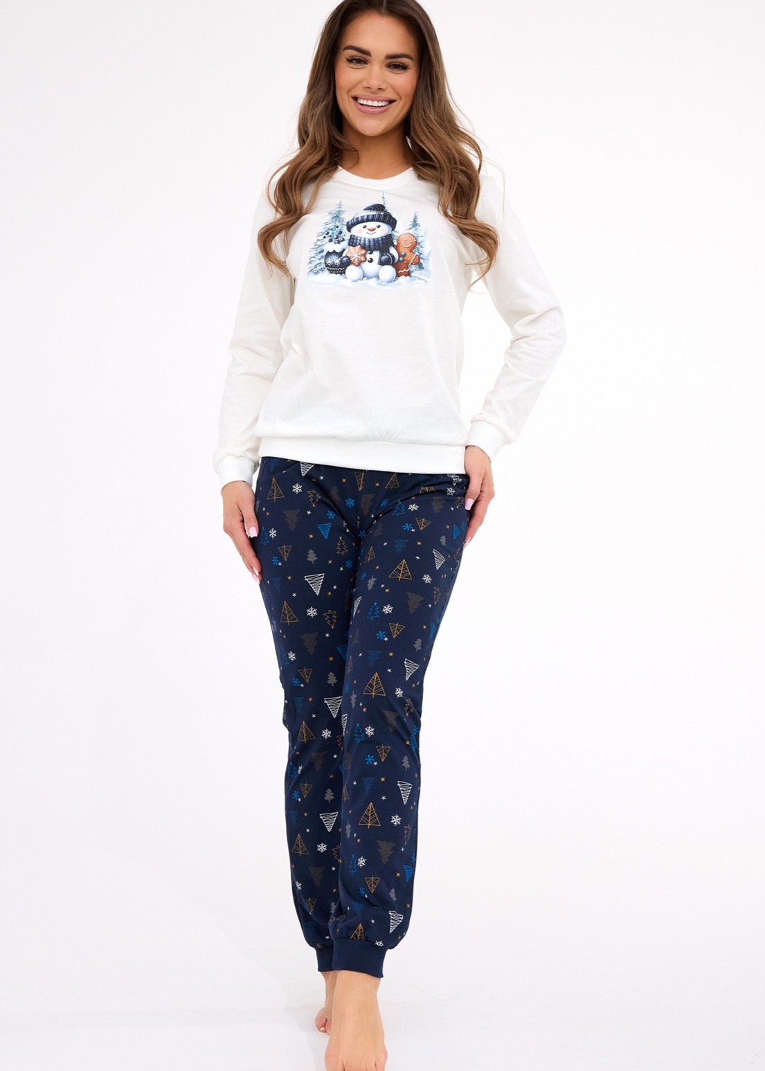Piżama damska Cornette 721/427 Snowy Day ecri długa bawełna WYPRZEDAŻ