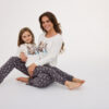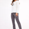 Piżama damska wykonana z wysokiej jakości, miękkiej bawełny zapewnia wyjątkowy komfort noszenia i delikatność dla skóry. Koszulka z długim rękawem ozdobiona jest kolorowym nadrukiem z przodu, nadającym zestawowi oryginalnego charakteru. Do kompletu dołączone są długie, wzorzyste spodnie, gwarantujące swobodę ruchów i wygodę zarówno podczas snu, jak i relaksu w domu. Całość jest starannie pakowana w eleganckie, ozdobne pudełko, co sprawia, że piżama doskonale sprawdzi się również jako prezent. Połączenie stylu i praktyczności sprawia, że jest to idealny wybór dla kobiet ceniących komfort, miękkość materiału i modny wygląd. Klasyczny krój i przyjemna tkanina czynią ją odpowiednią przez cały rok.