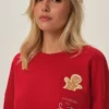 Dres/homewear damski- z miękkiej, gładkiej bawełny, od wewnątrz ocieplanej- bluza z długim rękawem- okrągły dekolt- ozdobiona kieszonką i elementem z motywem świątecznym- krótkie spodenki- dół bluzy i rękawy zakończone ściągaczemSkład: 100% bawełna