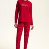 Piżama damska Henderson Ladies 43718 Dotie czerwona długa bawełna