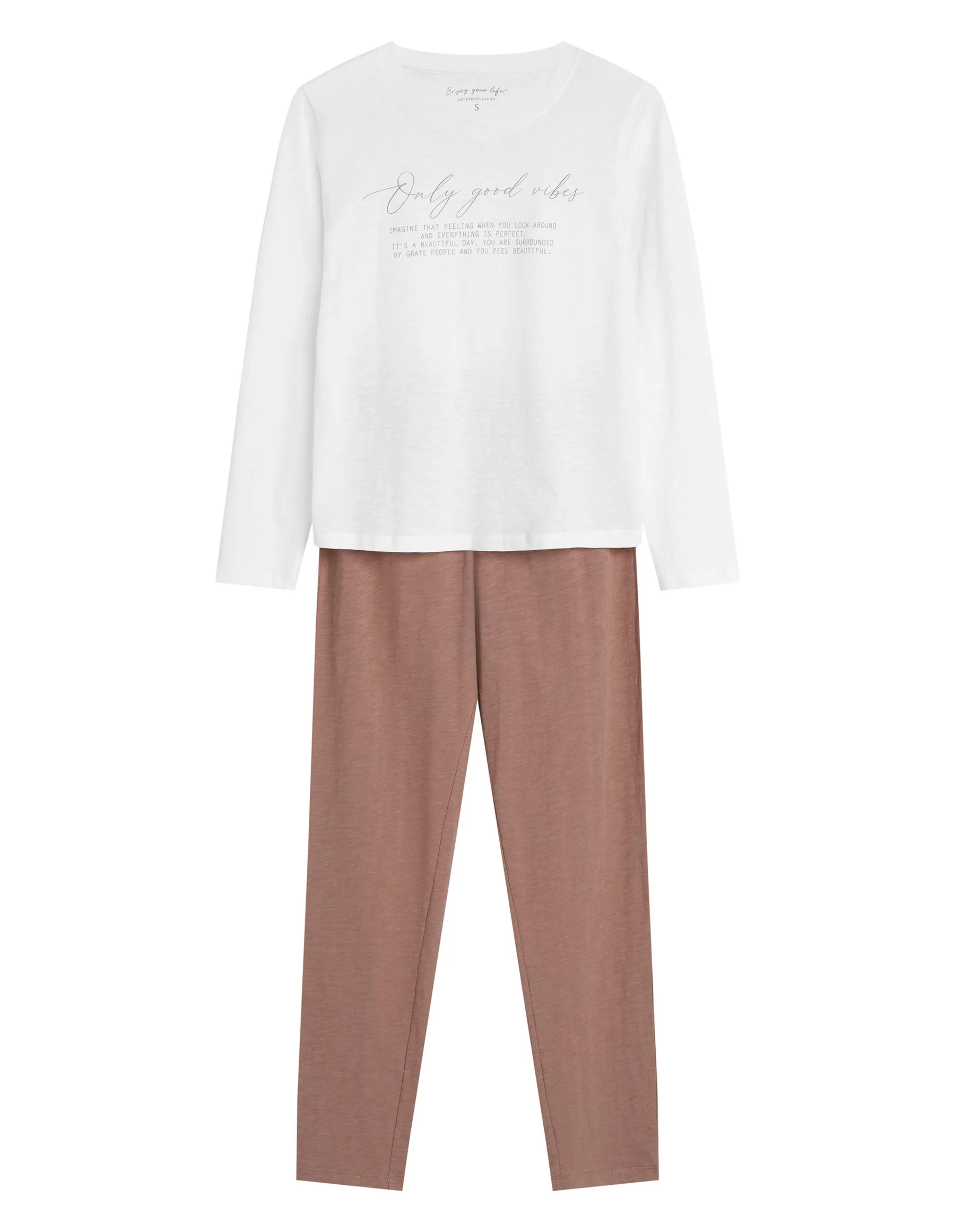 Piżama damska Henderson Ladies 43689 Dextra kremowa długa bawełna