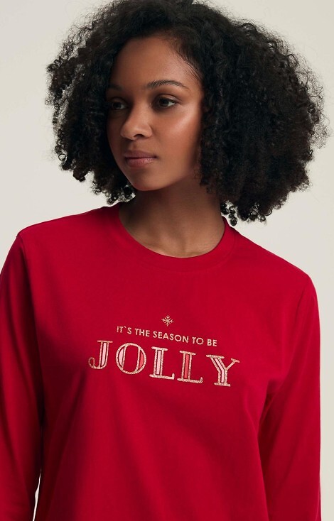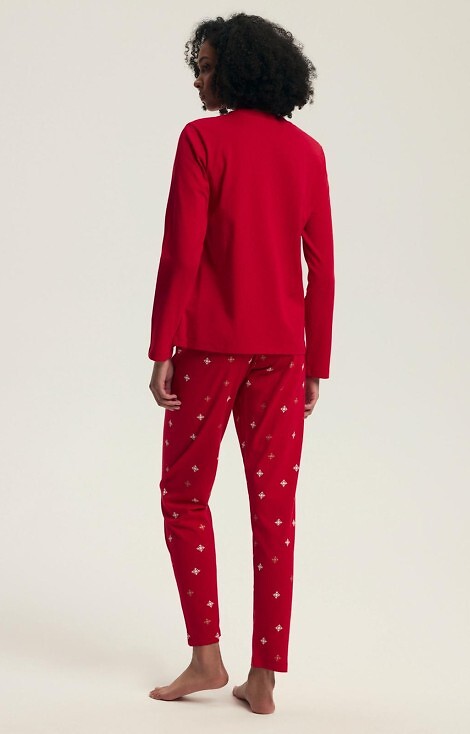 Piżama damska Henderson Ladies 43718 Dotie czerwona długa bawełna