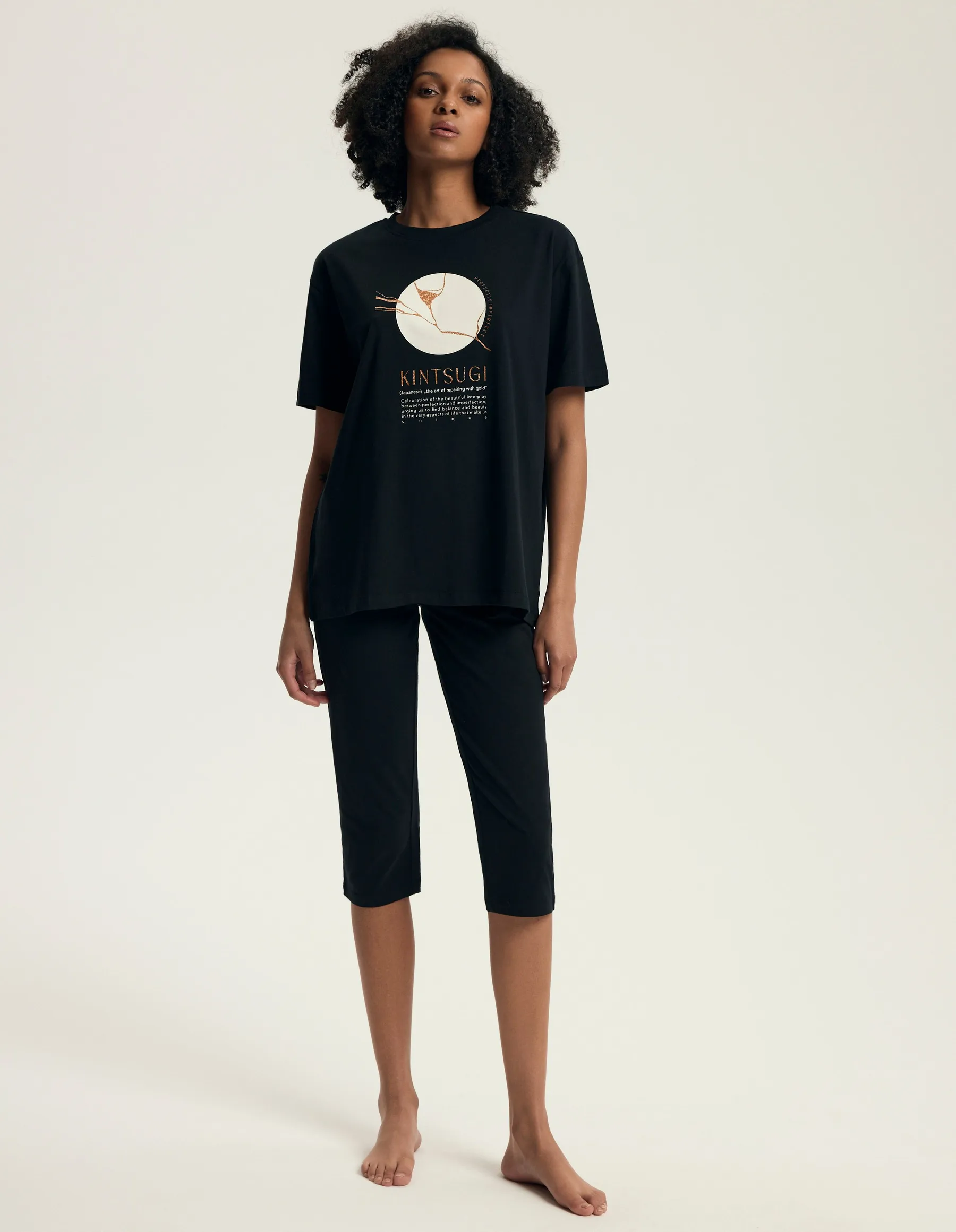 Piżama damska Henderson Ladies 43728 Dairoku czarna krótka bawełna