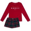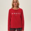 Bawełniana piżama damska to idealny wybór na zimowe wieczory i świąteczny czas. Górę kompletu stanowi koszulka z długim rękawem, ozdobiona uroczym, świątecznym wzorem, który wprowadza w przytulny, zimowy klimat. Do zestawu dołączone są krótkie spodenki z miękkiej, wzorzystej flaneli, które są ciepłe i miłe w dotyku. W pasie znajduje się elastyczna gumka obszyta bawełną, zapewniająca wygodne dopasowanie do sylwetki. Piżama wykonana w całości z naturalnej bawełny jest przewiewna, delikatna dla skóry i gwarantuje komfort podczas snu. To praktyczny i uroczy komplet, idealny na chłodniejsze wieczory i świąteczny relaks.