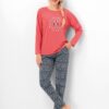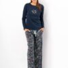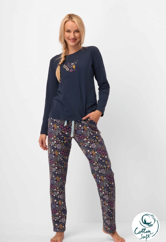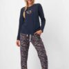 Piżama damska KEY bawełniana długa LNS-570 B25 granat-wzor