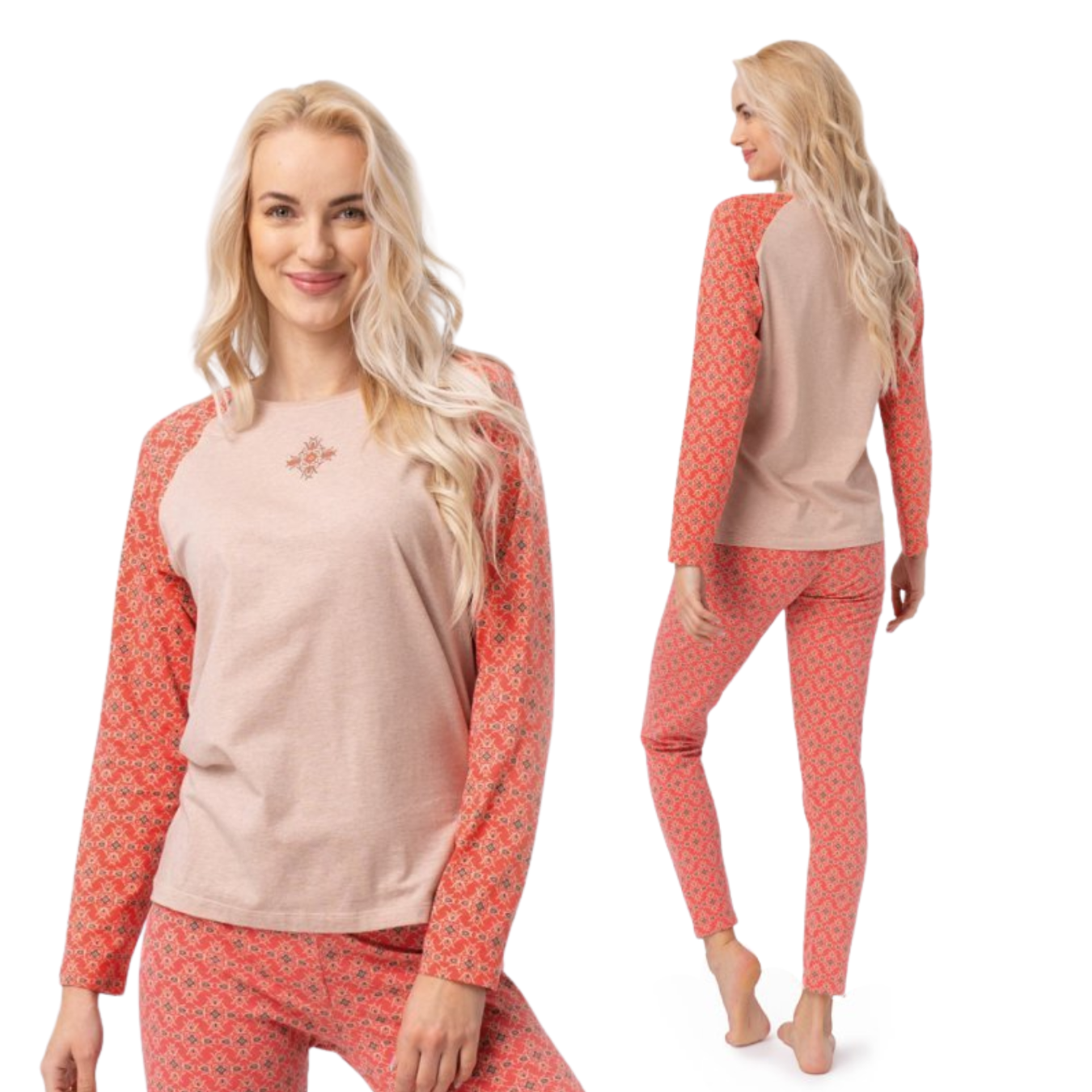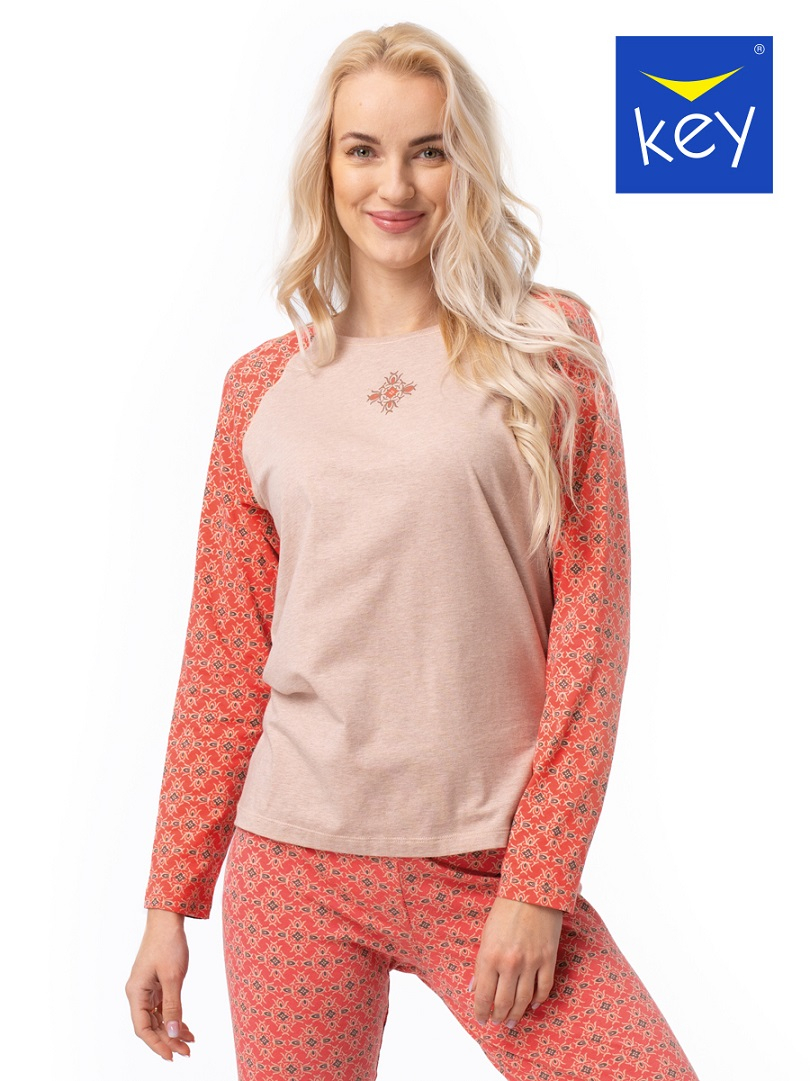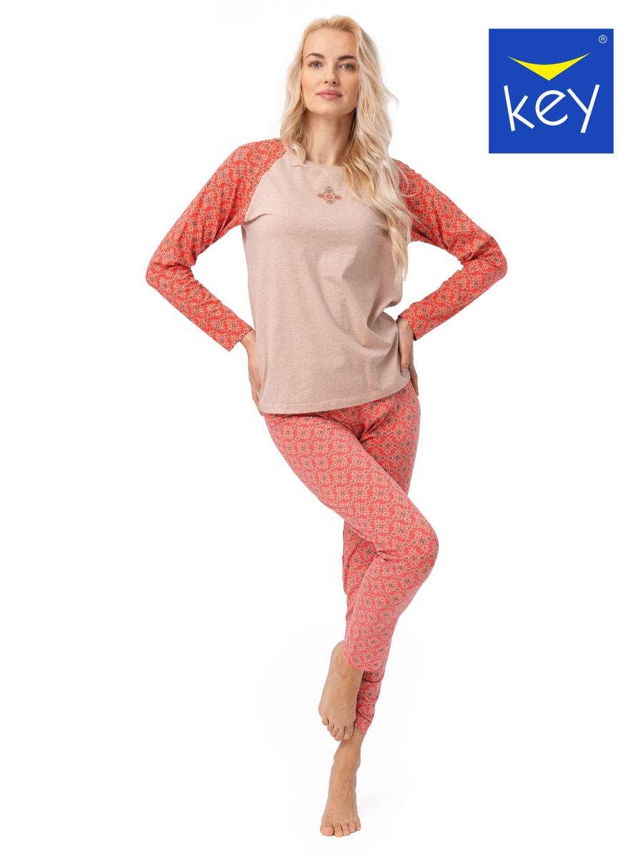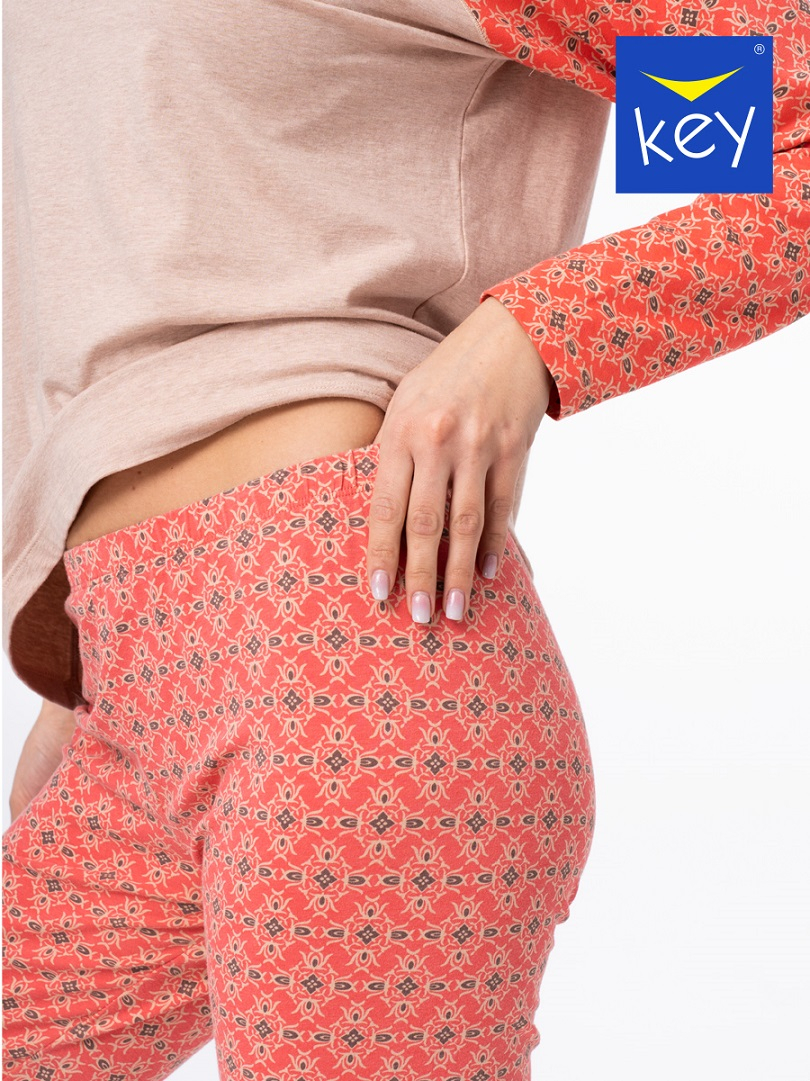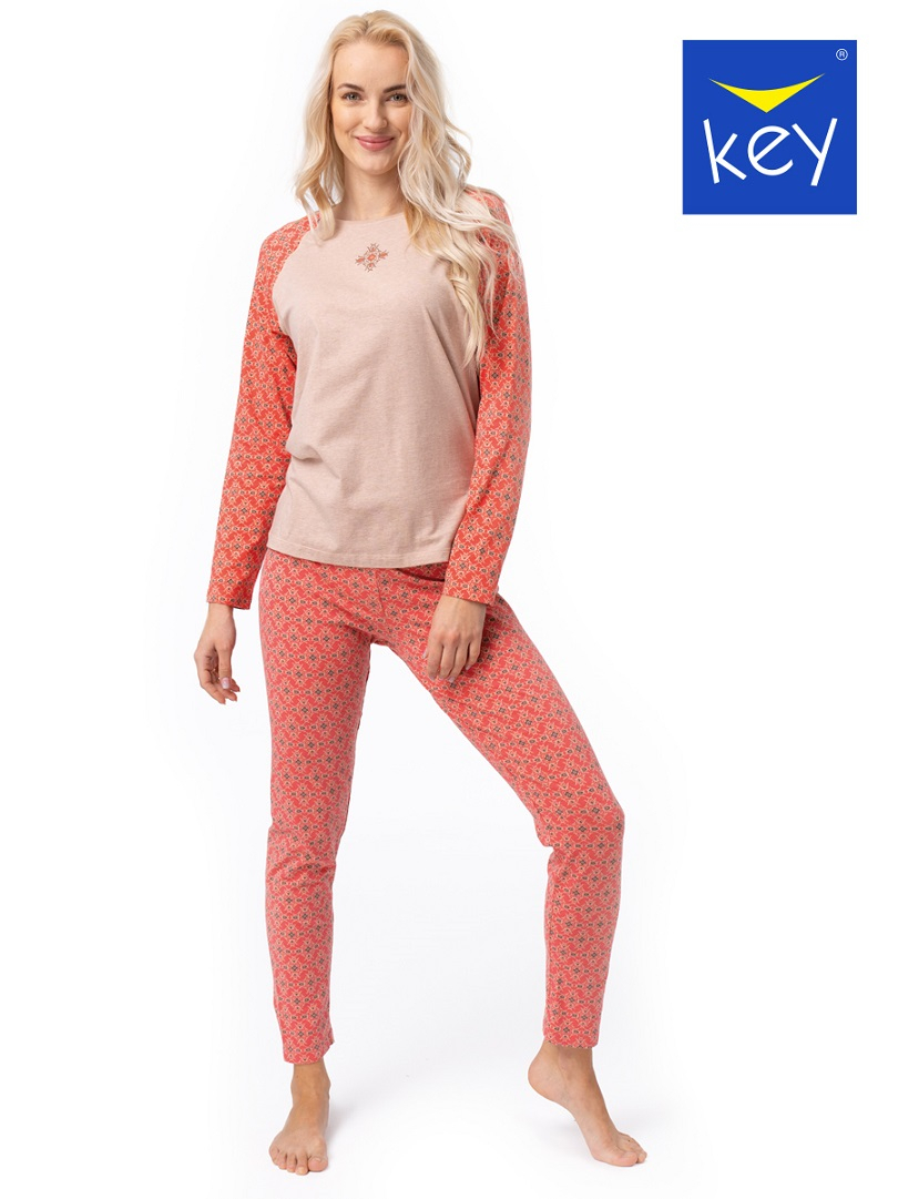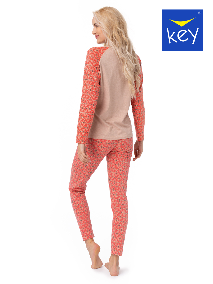 Piżama damska KEY LNS-938 B23 długa bawełniana pomarańczowa