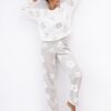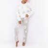 PPiżama damska typu homewear to idealna propozycja dla kobiet ceniących komfort i przytulny styl. Wykonana z miękkiego w dotyku materiału typu soft, zapewnia wyjątkową wygodę oraz uczucie ciepła, dzięki czemu świetnie sprawdzi się w chłodniejsze dni. Klasyczna koszulka z długim rękawem i okrągłym dekoltem prezentuje się uniwersalnie i kobieco, a jednocześnie pozwala na pełną swobodę ruchów. Do kompletu dołączone są długie spodnie o prostym i wygodnym kroju, które gwarantują maksymalny komfort zarówno podczas snu, jak i w trakcie codziennego relaksu w domu. Zestaw ten doskonale sprawdzi się nie tylko jako piżama, ale również jako stylowy homewear, który umili chwile odpoczynku i doda uroku domowej garderobie.