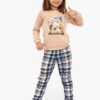 Piżama dziewczęca wykonana z wysokiej jakości, miękkiej bawełny to idealny wybór na komfortowy sen i relaks w domu. Naturalna, przewiewna tkanina jest przyjemna w dotyku i delikatna dla skóry dziecka, zapewniając wygodę przez całą noc. Górę kompletu stanowi koszulka z długim rękawem, ozdobiona z przodu kolorowym nadrukiem, który dodaje całości radosnego, dziecięcego charakteru. Do zestawu dołączone są długie spodnie w klasyczną kratkę, które gwarantują swobodę ruchów i komfort noszenia. Rękawy, nogawki oraz dół bluzy wykończono elastycznymi ściągaczami, co zapewnia idealne dopasowanie i ochronę przed chłodem. Całość pakowana jest w estetyczne pudełko, dzięki czemu piżama sprawdzi się również jako prezent.