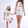 Letnia piżama damska wykonana z wysokiej jakości, miękkiej bawełny to idealny wybór na ciepłe noce. Koszulka z krótkim rękawem zapewnia swobodę ruchów i przewiewność, a kolorowy nadruk z przodu dodaje całości uroku i radosnego charakteru. Do zestawu dołączone są krótkie spodenki w uroczy wzór serduszek, które świetnie komponują się z górą piżamy. Elastyczny pas gwarantuje wygodne dopasowanie, a lekki materiał delikatnie otula skórę, zapewniając komfort przez całą noc. Całość zapakowana jest w estetyczne pudełko, co czyni ją także idealnym pomysłem na prezent. Stylowa, wygodna i kobieca – idealna na lato.