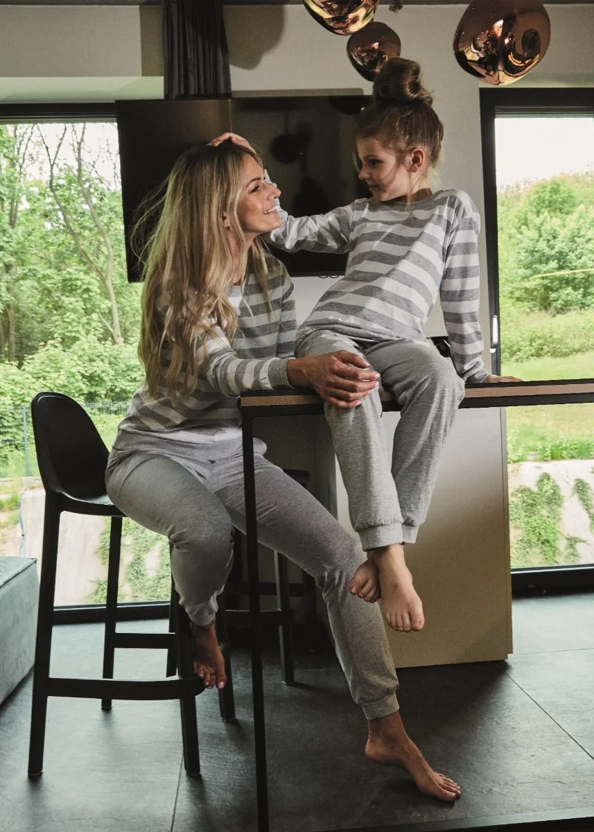 Wygodna piżama dziewczęca wykonana z wysokiej jakości bawełny to idealny wybór na chłodniejsze wieczory. Zestaw składa się z koszulki z długim rękawem, która zapewnia ciepło i komfort, a jej dół oraz mankiety wykończone są praktycznymi ściągaczami, które zapobiegają podwijaniu się materiału. Do kompletu dołączone są długie, melanżowe spodnie, wyposażone w gumkę i troczki do wiązania, dzięki czemu idealnie dopasowują się do sylwetki, zapewniając wygodę noszenia. Nogawki spodni także zakończone są ściągaczami, co zwiększa komfort podczas snu i zabawy. Piżama jest starannie zapakowana w estetyczne pudełko, co czyni ją również doskonałym pomysłem na prezent.