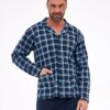 Piżama męska rozpinana wykonana z wysokiej jakości bawełny to idealny wybór dla mężczyzn ceniących komfort i klasyczny styl. Górę kompletu stanowi wzorzysta bluza z długim rękawem, kołnierzykiem oraz zapięciem na guziki, która ułatwia zakładanie i nadaje piżamie elegancki, ponadczasowy charakter. Dodatkowo bluza posiada praktyczne kieszenie, które zwiększają funkcjonalność zestawu. Długie, jednolite spodnie zapewniają pełną swobodę ruchów i komfort noszenia. Miękka, przewiewna bawełna jest przyjazna dla skóry, co gwarantuje wygodę zarówno podczas snu, jak i relaksu w domu. Całość tworzy stylowy i praktyczny komplet, idealny do codziennego użytkowania.