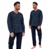 Stylowa i komfortowa piżama męska wykonana z wysokiej jakości bawełny, doskonała na chłodniejsze wieczory. Koszulka z długim rękawem posiada dekolt w szpic starannie obszyty lamówką, co nadaje jej eleganckiego charakteru. Na piersi znajduje się praktyczna kieszonka, stanowiąca subtelny i funkcjonalny detal. Spodnie z długą nogawką ozdobione klasycznym printem w kratkę prezentują się ponadczasowo, a wygodna gumka w pasie gwarantuje idealne dopasowanie i pełną swobodę ruchów. Piżama została starannie zapakowana w pudełko, dzięki czemu świetnie sprawdzi się także jako gustowny prezent. To połączenie wygody, jakości i eleganckiego wzornictwa, które zapewnia komfortowy sen i przyjemny wypoczynek.