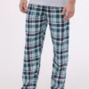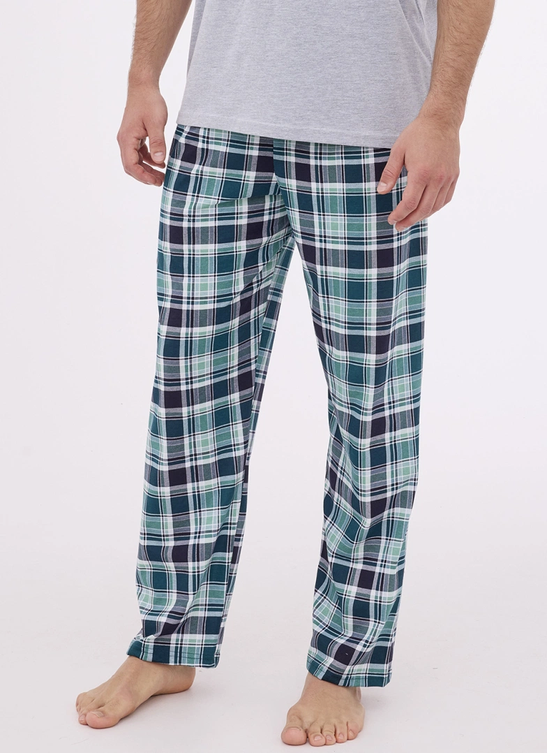 Do kompletu dołączone są długie spodnie w klasyczną kratkę, które idealnie dopełniają zestaw, gwarantując wygodę i styl podczas snu. To połączenie komfortu i ponadczasowego designu, które sprawdzi się w każdej sypialni.