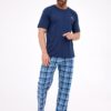 Komfortowa piżama męska wykonana w 100% z naturalnej, miękkiej bawełny zapewnia komfort i przewiewność na każdą noc. Koszulka z krótkim rękawem i półokrągłym dekoltem wyróżnia się subtelnym, małym nadrukiem na piersi, który dodaje całości nowoczesnego charakteru. Długie spodnie w klasyczną kratkę gwarantują wygodę i swobodę ruchów, a w pasie umieszczona jest gumka obszyta bawełnianym materiałem, co zapewnia idealne dopasowanie bez ucisku. To połączenie praktyczności i stylu sprawia, że piżama doskonale sprawdzi się zarówno do snu, jak i na relaks w domu. Naturalny materiał jest delikatny dla skóry i łatwy w pielęgnacji.