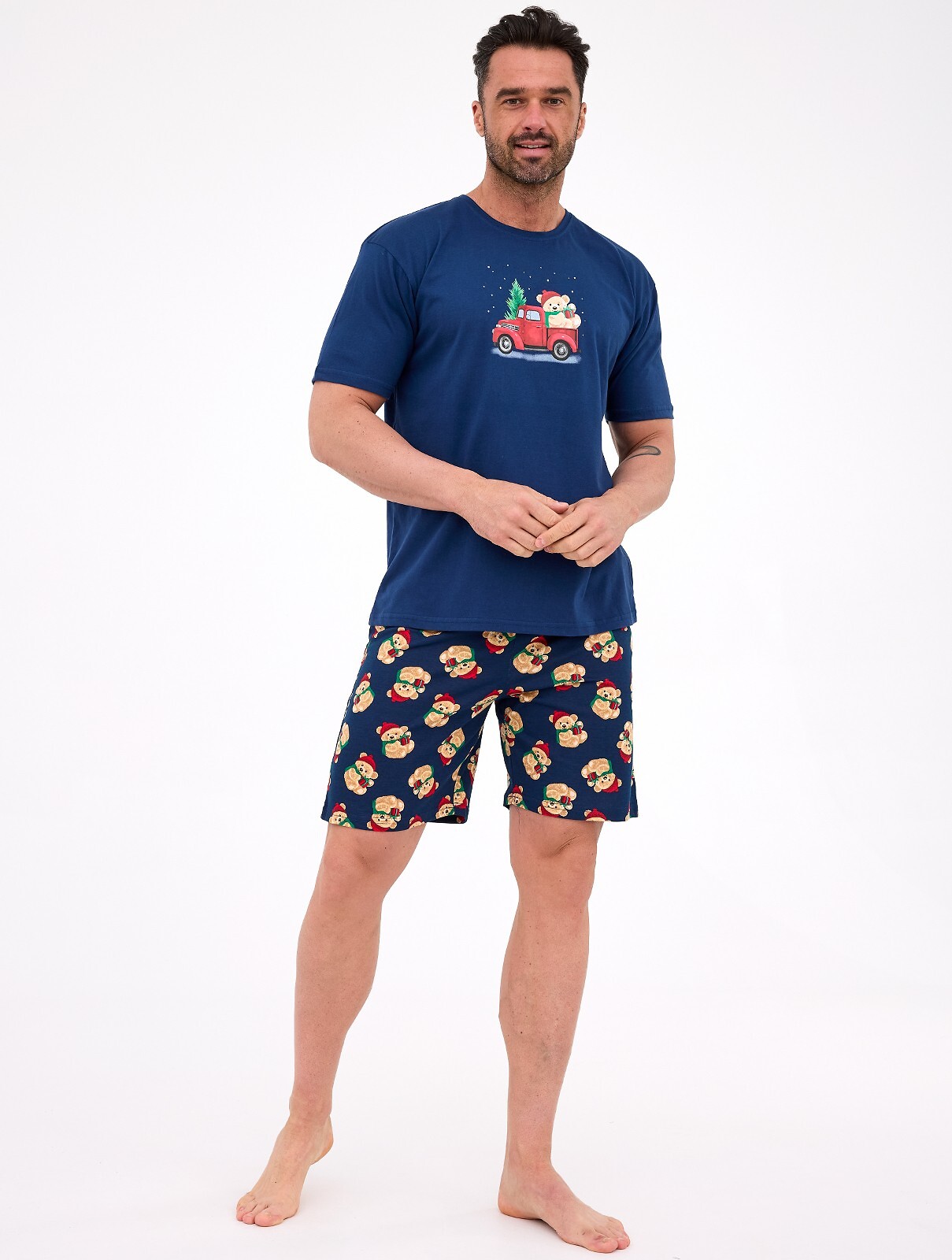 Piżama męska Cornette 326/291 Teddy 4 Christmas krótka bawełna granatowy