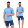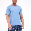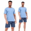 Bawełniana piżama męska to komfortowy i praktyczny komplet, idealny na ciepłe noce i letni relaks w domu. Koszulka z krótkim rękawem i półokrągłym dekoltem zapewnia swobodę ruchów i wygodę noszenia, a subtelny nadruk na piersi dodaje zestawowi nowoczesnego charakteru. Krótkie spodenki w klasyczną kratę gwarantują komfort i przewiewność, a elastyczna gumka w pasie obszyta bawełną zapewnia idealne dopasowanie do sylwetki bez ucisku. Koszulka wykonana jest z materiału w składzie 80% bawełna i 20% poliester, co zwiększa trwałość i odporność na codzienne użytkowanie, natomiast spodenki w 100% z bawełny są miękkie i przyjazne dla skóry.