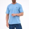 Bawełniana piżama męska to wygodny i praktyczny komplet, idealny na letnie noce i domowy relaks. Koszulka z krótkim rękawem i półokrągłym dekoltem zapewnia swobodę ruchów oraz komfort noszenia, a subtelny nadruk na piersi nadaje zestawowi nowoczesnego charakteru. Krótkie spodenki w klasyczną kratę gwarantują przewiewność i wygodę, a elastyczna gumka w pasie obszyta bawełną umożliwia idealne dopasowanie do sylwetki bez ucisku. Koszulka wykonana w 100% z bawełny jest miękka i przyjazna dla skóry, natomiast spodenki w składzie 80% bawełna i 20% poliester łączą komfort użytkowania z większą trwałością i odpornością na codzienne pranie. Całość tworzy praktyczny i stylowy komplet na lato.