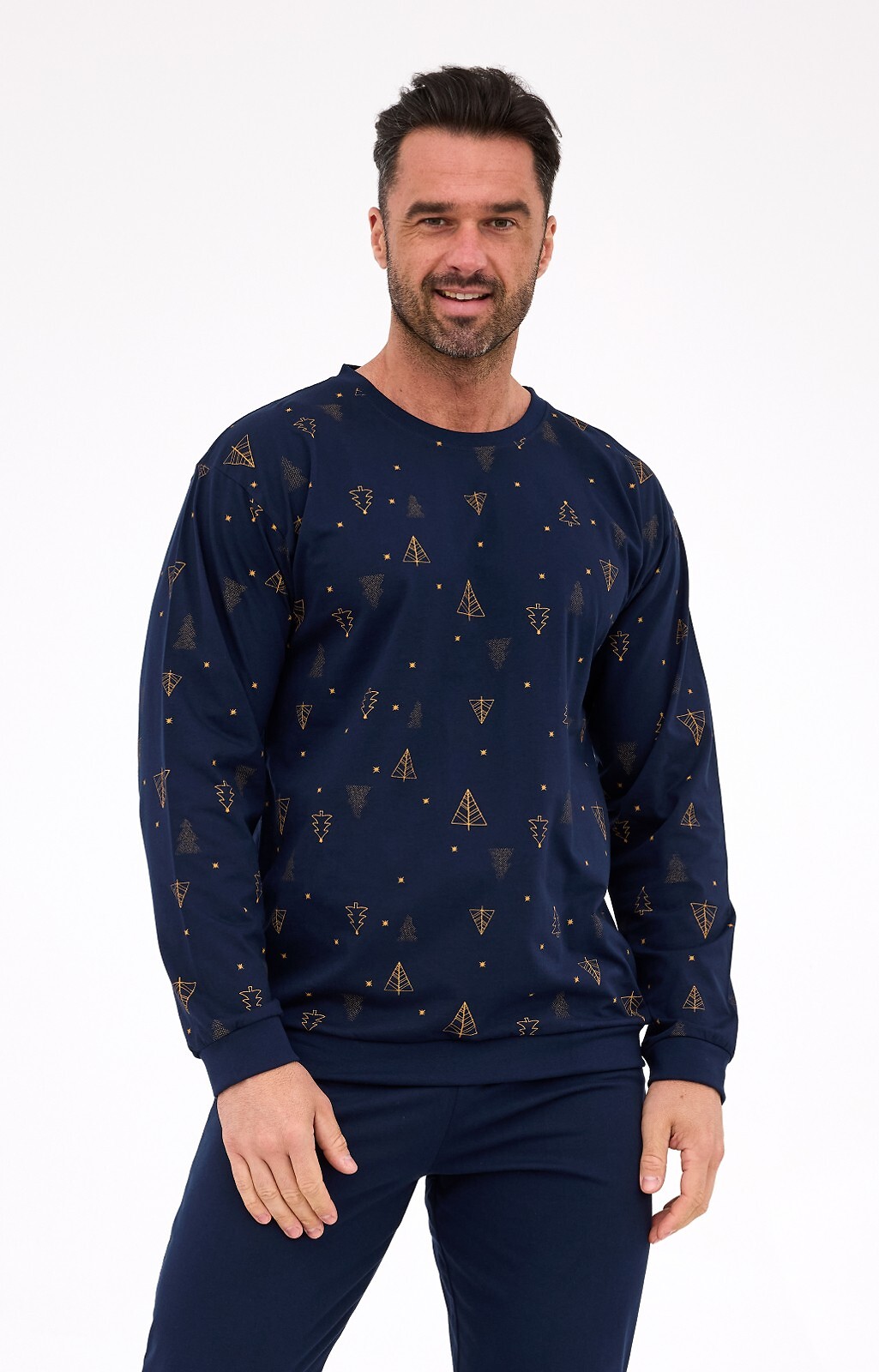 Piżama męska z kolekcji Merry Christmas to wygodny i stylowy zestaw idealny na świąteczne wieczory i zimowe noce. Wykonana z wysokiej jakości bawełny, zapewnia komfort noszenia i przyjemne uczucie miękkości na skórze. Koszulka z długim rękawem ozdobiona jest świątecznym printem, który wprowadza radosny, bożonarodzeniowy nastrój. Długie, jednolite spodnie posiadają wygodną gumkę w pasie, gwarantującą idealne dopasowanie. Mankiety koszulki, dół bluzy oraz nogawki spodni wykończone są ściągaczem, co zapewnia komfort i swobodę ruchów. Całość pakowana jest w eleganckie pudełko, dzięki czemu piżama może stanowić również doskonały prezent.